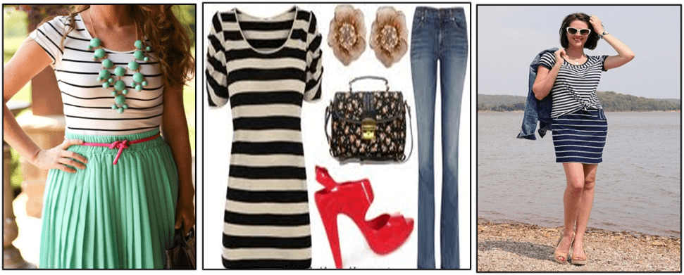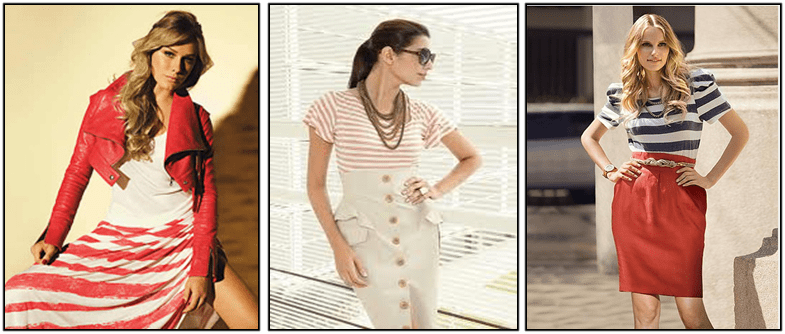 Ficamos sempre preocupadas com as versões horizontais que dizem engordar a silhueta enquanto as verticais emagrecem, na verdade o que leva em consideração efetivamente é o tipo do tecido usado, o corte da roupa e a largura das listras, esses itens que criam ilusão de ótica.