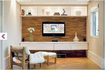 Pode ser usado tanto no chão, quanto na parede, formando um lindo (e bem mais barato) painel de madeira. Fica muito chique.