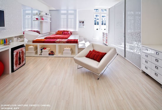 Versátil, vai bem em qualquer ambiente, fácil de aplicar, não precisa quebradeira nem sujeira, fácil de limpar, a limpeza é feita normalmente, fora que, ele confere um ar mais aconchegante e caloroso ao ambiente, seja no quarto seja na sala, fica aquela sensação gostosa e acolhedora, além do que, tem um mais bonito do que o outro, são várias estampas (imitando madeira) e algumas são tão perfeitas que você não diz mesmo que é uma réplica.