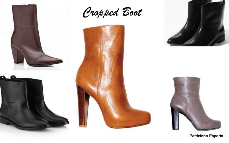 As Cropped Boots são botas simples, básicas, sem muitos detalhes, possuem o cano médio e o salto grosso. Elas são bem versáteis, vão com tudo e em qualquer hora do dia, são confortáveis e arrematam o visual. Como  achatam um pouco a silhueta  é melhor usá-las com calça ou legging da mesma tonalidade ou com saia acima do joelho.