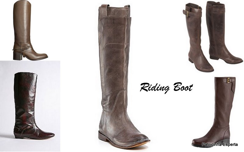 Riding Boot, ou bota de montaria, é uma bota de cano alto, salto baixo e bico arredondado inspirada nas botas usadas pelos praticantes de hipismo. São botas  bem clássicas, super confortáveis, super democráticas e fáceis de usar.