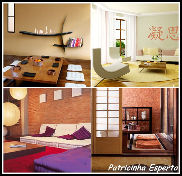 Para uma decoração oriental, são usados poucos objetos decorativos, utilizando somente os móveis essenciais que devem ter linhas retas e  serem baixos tudo com muita  simplicidade. São futons, banquinhos, tatames e almofadas que trazem conforto ao ambiente.