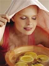 Em uma vasilha, coloque uma quantidade de água quente e, com o auxílio de uma toalha para cobrir a cabeça , aproxime o rosto da vasilha, para que o vapor possa abrir os poros.Fique uns 5 minutos. Mas cuidado para não se queimar!