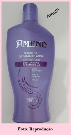 Shampoo desamarelador (se me dissessem que bebê-lo fizesse mais efeito eu já seria viciada). Comecei utilizando o Amend. Gostei, e utilizei em todas as lavagens (dia sim, dia não). Tirou bem o amarelado, não é caro e não resseca horrores (claro que faço hidratações, reconstruções e nutrições sempre). Paguei R$ 17,00 e encontrei em todas as perfumarias da minha cidade. Fica a dica.