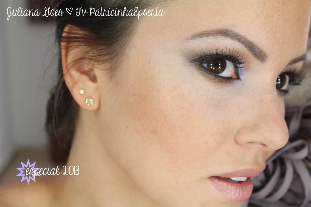 Recebi muitos pedidos de uma maquiagem com os tons usados: lilás, dourado/cobre, preto. Fiz questão de atender a tempo, porque esses tons de sombra são excelentes para nossa beleza brasileira e ficam muito bem em morenas e negras! Claro, para as branquelas que nem eu, também cai bem sem pesar, pois o lilás dá um toque feminino ao nosso esfumado.
