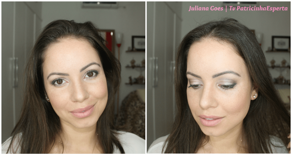 Nesse look usei as quatro cores: perolado rosê, coral, cinza e preto. Minha dica para quem é mais básica: dispense o preto. O cinza é uma cor fácil de usar, pois não pesa, fica bem em praticamente todo mundo. Vale lembrar que de dia as sombras mais opacas ou aveludadas são mais adequadas. O brilho você deixa para usar de noite, ok?! (A não ser que você tenha um sangue muito italiano e não dispense o brilho nem de dia, respeito!)