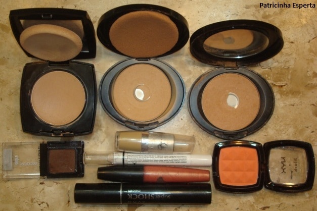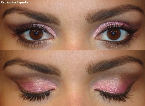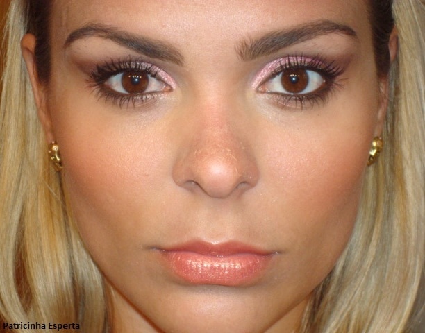Nos olhos, usei três tons de sombra 3D: GOIABA, ROSA, MARROM.