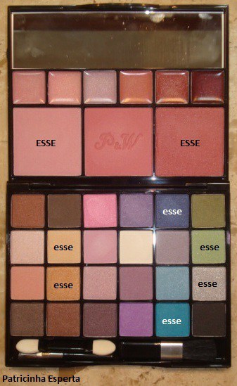 A paleta de hoje é essa da P&W (código: MK-7024) “Kit de Maquiagem 3 Dimension, com 24 cores em 3d, cintilantes e opacas de sombras, além de 3 blushes e 6 batons: