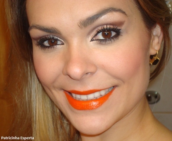 Segundo, no vídeo sobre as minhas comprinhas, no mês de março, mostrei um batom laranja (um escândaloooo…) e várias leitoras me pediram para fazer um tutorial usando ele.