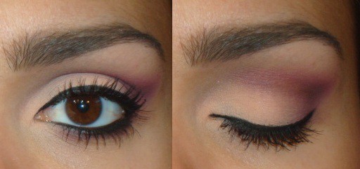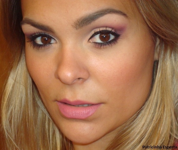 Assim, essa make é um pouco mais pesada que a outra, mas continua sendo pra se usar durante o dia, pois apesar do delineado, ela ainda é discreta, pois as sombras são opacas, e tem pouco tom escuro (vinho).