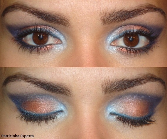 Eu sei que muitas meninas tem medo de usar sombras coloridas, e acredito que a make de hoje seja uma boa opção pra começa a ousar, já que misturo dois tons de azul com um tom mais quente e neutro, que é o cobre!