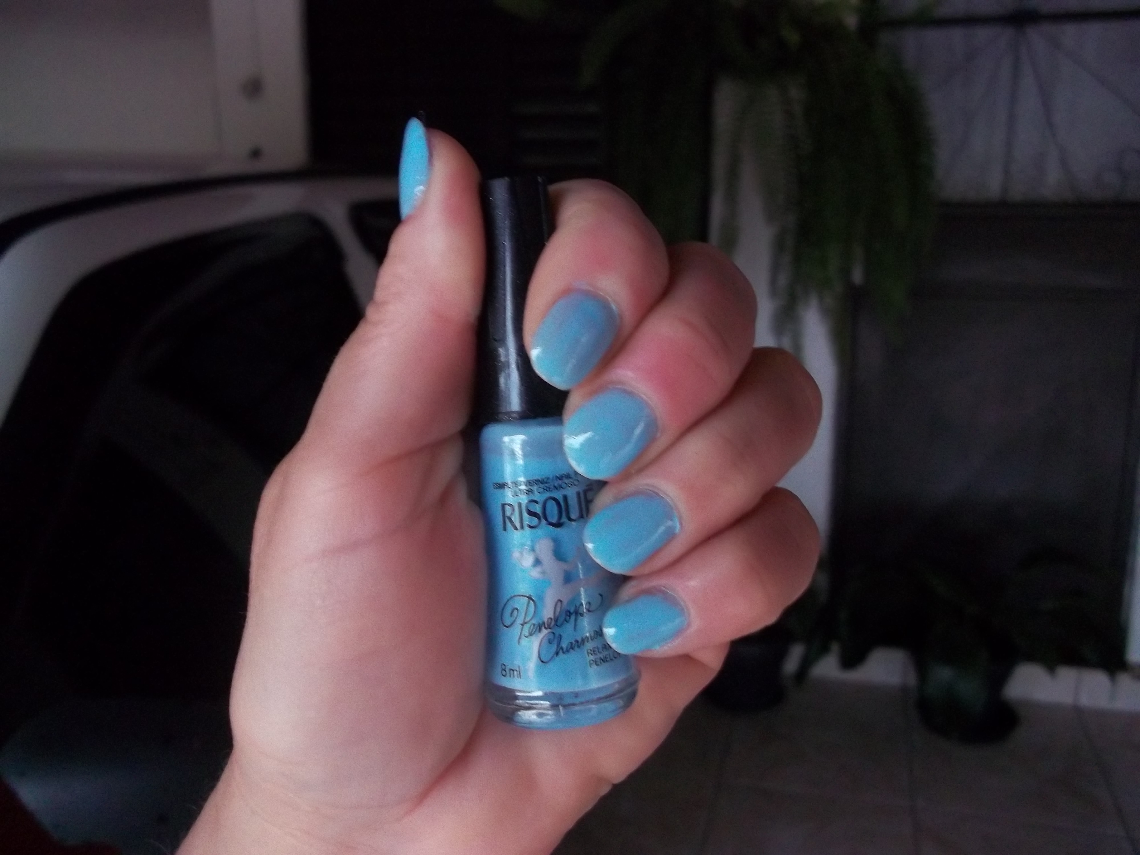 A cor que ela escolheu foi RELAX DE PENELOPE da RISQUE, um azul lindo, na minha opinião!