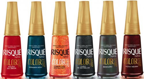 Coleção essa que vem com 8 cores,  dividida em esmaltes Cremosos, Perolados e 1 glitter holográfico.